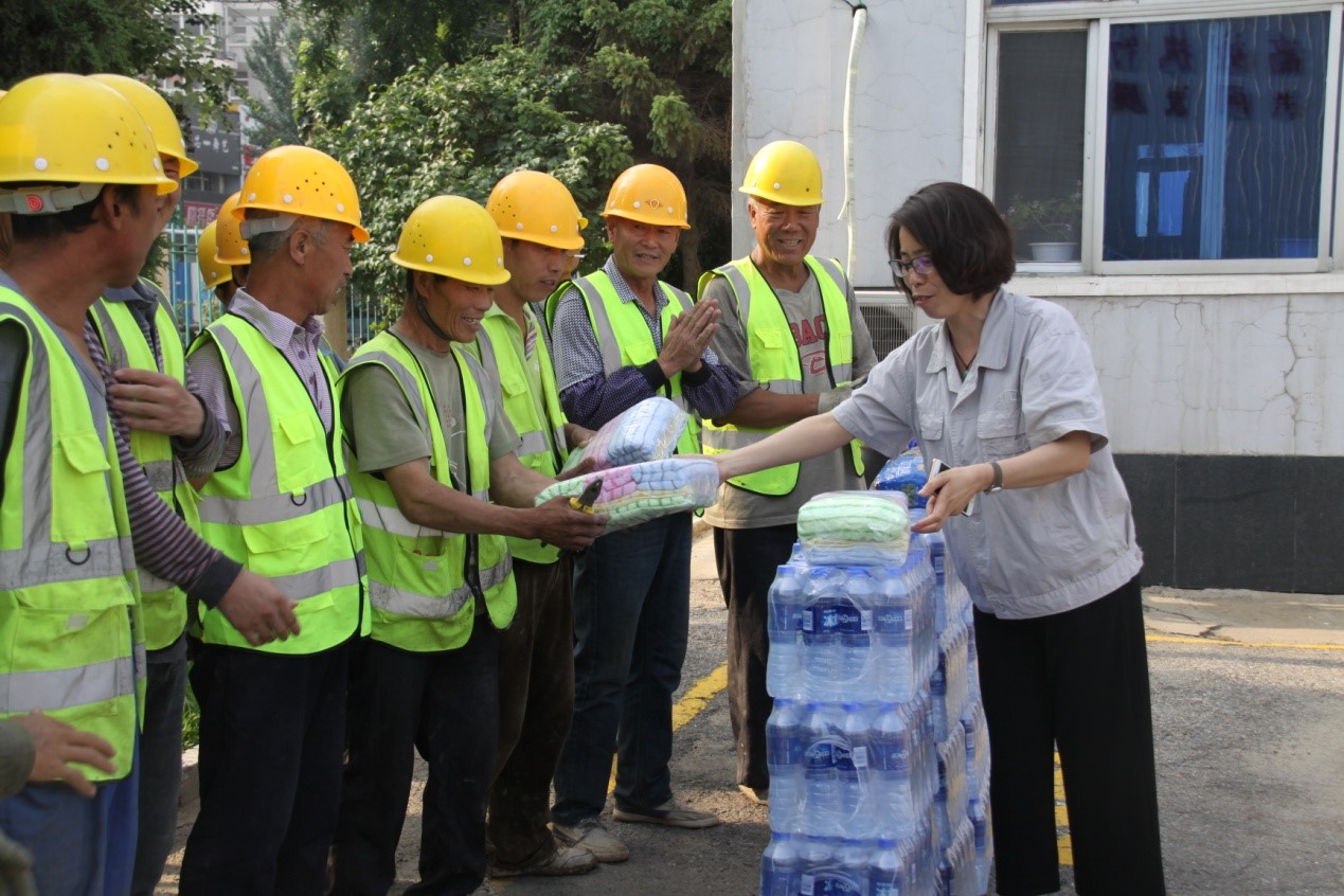 2018年6月12日下午,沈陽防銹向皇姑區(qū)環(huán)衛(wèi)及市水務(wù)集團(tuán)一線工作者們進(jìn)行慰問,并捐贈(zèng)了一批礦泉水、毛巾和工作手套。沈陽防銹總經(jīng)理劉艷霞、皇姑區(qū)首府城管一所所長周雪梅、副所長白冰、市水務(wù)集團(tuán)施工單位領(lǐng)導(dǎo)共同參加了慰問捐贈(zèng)活動(dòng)。